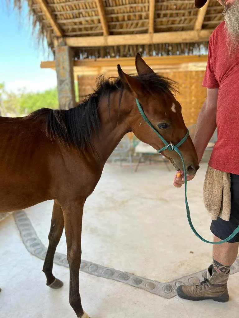 Underfed, weak and timid, we transported her to the sanctuary where she has been tended to with care and an abundance of supplements and nutritional support. She has now become a spunky part of the herd in less than one month and has integrated the herd that took her in right away. Much gratitude to all the ranch friends who made this rescue possible. All your generous donations helped tremendously.