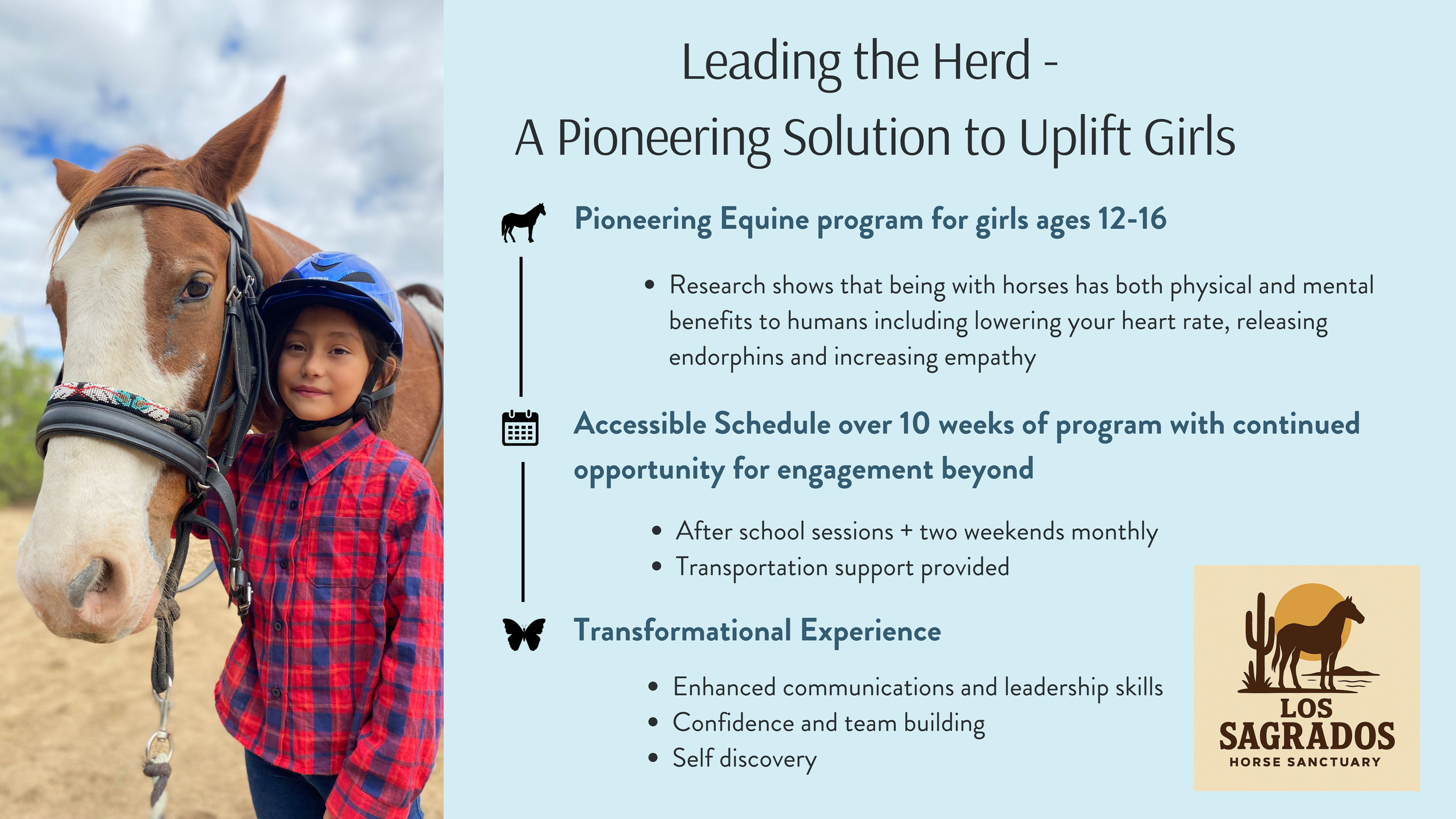 We are currently seeking partners and funding for a new comprehensive program Leading the Herd If you would like to learn more about our pilot program Leading the Herd, please reach out to us at hola@lossagrados.org